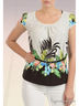 Прекрасная блуза с короткими рукавами и округлым вырезом горловины. Изделие выполнено из принтованной ткани контрастной расцветки. Отличный вариант на каждый день.