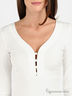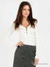 Детали: V-образный вырез горловины, застежка на пуговицы, отрезной лиф, нижний край декорирован стразами