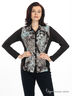 Детали: застегивается на пуговицы; отложной ворот и перед изделия декорирован ажурной гипюровой вставкой; два втачных кармана