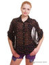 Широкая блуза с рукавами "летучая мышь" из полупрозрачной ткани с рисунком. Застежка на пуговицы.