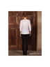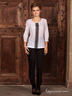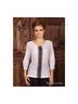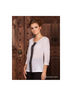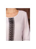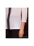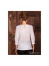 Блузка прямого кроя с рукавами длинной 3/4 и кружевным рисунком спереди. Застежка на пуговицу сзади.
