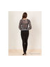 Блузка свободного кроя с рукавами длинной 3/4 и контрастным рисунком по всей модели.