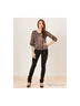 Блузка свободного кроя с рукавами длинной 3/4 и контрастным рисунком по всей модели.