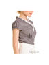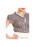 Блузка с короткими рукавами, с контрастным рисунком в мелкую клетку и отделкой кружевом.