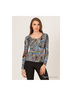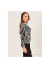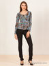 Трикотажная блузка с длинными рукавами, округлым вырезом горловины и контрастным рисунком по всей модели