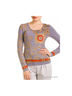 Трикотажная блузка классического кроя с округлым вырезом горловины и длинными рукавами.