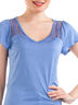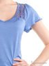 Футболка с короткими рукавами и кружевными вставками на плечах.