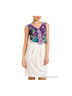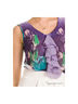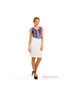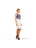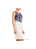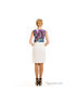 Блуза прямого кроя с контрастным рисунком и отделкой воланами спереди.