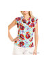 Блуза прямого кроя с воротником "шалькой" и оригинальным рисунком по всей модели.