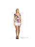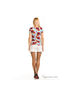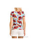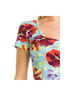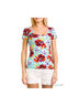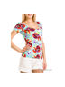 Блуза приталенного кроя с короткими рукавами и контрстным цветным рисунком.
