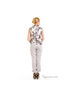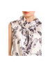 Блуза свободного кроя с воротником "шалькой" и контрастным рисунком.