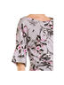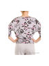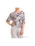 Блуза свободного кроя с широкими рукавами и контрастным рисунком.