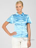 Легкая блуза из атласной ткани с коротким рукавом-бабочкой. Приталенный крой. Отложной воротник. Планка-застежка с потайными пуговицами.