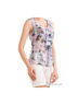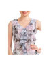 Стильная женская блуза выполнена из приятного на ощупь материала. Изделие с V-образным вырезом горловины, без рукавов, полочка изделия украшена воланами.