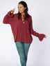 Детали: длинные рукава с рюшами по низу, вырез под горло с завязками