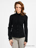 Стильная блуза из плотной матовой ткани. Стояче-отложной ворот. Длинные прямые рукава с фигурными отворотами на пуговицах. Застежка на потайную планку с пуговицами. Полочки декорированы эффектными заложенными складками. Отлично будет сочетаться с брюками и юбками разных фасонов и фактур!