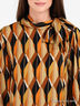 Детали: отложной воротник на широких завязках и пуговицах, длинные рукава с манжетами, низ посажен на резинку
