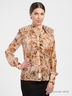 Блуза женская с длинными рукавами эффектной расцветки. Спереди и на плечах, изделие декорировано рюшами. Отличный вариант на каждый день.