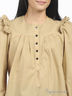 Детали: круглая горловина с кокеткой, широкие рукава с манжетами, планка-застежка на полочке