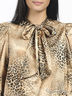 Детали: на шее бант-завязка, рукава с манжетами присборены на плечах, планка-застежка на пуговицах