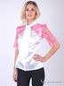 Очаровательная блуза с короткими рукавами и воротником-стойкой. Модель приталенного кроя выполнена из качественного материала привлекательной расцветки. Рукава выполнены из гипюра. Отличный вариант на каждый день.