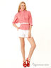Очаровательная блуза в крестьянском стиле из стрейчевого хлопка в клетку, с очаровательным ремнем с бантиком.