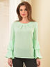 Блузка прямого силуэта из креп -шифона. Вырез горловины округлый, по вырезу декоративные складки. Рукав втачной длинный на резинке с двойным фонариком. Рост модели на фото 168 см.