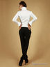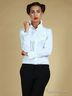 Изящная блузка прямого кроя с застежкой на пуговицы. Рукава и воротник оформлены элегантными оборками.