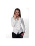 Воздушная блуза приталенного силуэта. Выполнена из приятного на ощупь материала. Длинные рукава с широкими манжетами на пуговицах. Отложной воротник-стойка. Застежка на пуговицы. Полочка украшена струистыми воланами. Будьте неотразимой каждый день!