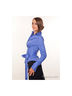 Шикарная блуза приталенного силуэта. Выполнена из приятного на ощупь материала. Длинные рукава с широкими манжетами на пуговицах. Отложной воротник-стойка. Застежка на пуговицы. Талия стильно украшена широким поясом. Непревзойденный вариант на все случаи жизни!