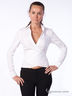 Детали: отложной ворот-стойка, V-образный вырез горловины с запахом, застежка на спинке