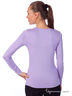 Детали: округлый вырез горловины, застежка на пуговицы, длинный прямой рукав, полочка декорирована воланами