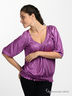 Детали: v-образный вырез горловины, короткий рукав собран на манжету, низ изделия собран на многорядную резинку
