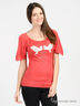 Стильная блуза из тонкого, мягкого полувискозного трикотажа. Широкий округлый вырез горловины. Укороченные рукава-реглан. Низ изделия выполнен из кашкорсе. На полочке крупное вывязанное изображение, декорированное стразами. Прекрасный вариант для создания женственного образа!