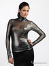 Детали: округлый вырез горловины дополнен завязками, длинный прямой рукав собран на манжету