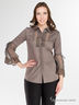 Очаровательная блуза с длинными рукавами и отложным воротником. Модель приталенного кроя выполнена из качественного материала привлекательной расцветки. Изделие декорировано кружевом и рюшами. Отличный вариант на каждый день.