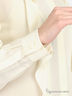 Воздушная шифоновая блуза из натурального шелка с длинным рукавом и небольшим воротом. Застежка на пуговицы, манжеты на пуговице. Полочка и рукава украшены воланами. Нежная и легкая, она добавит в Ваш строгий деловой образ нотку женственности и романтичности.