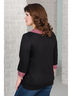 Женственная блуза, сделанная из плотного трикотажного полотна, с легкостью скроет все недостатки фигуры. Низ блузы собран на пояс, что позволяет подчеркнуть линию бедер прекрасной половины общества. В качестве отделки выступает контрастный цвет на горловине и манжетах, который гармонично сочетается с цветом изделия.