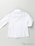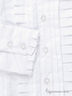 Нарядная блуза выполнена из нежного хлопкового батиста. Отложной воротник декорирован стразами, застежка на пуговицы, длинный прямой рукав с манжетой на двух пуговицах, полочка декорирована оборками и рельефами.