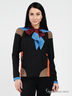 Детали: округлый вырез горловины с длинными завязками для банта. Длинные облегающие рукава.