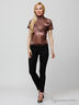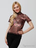 Блуза с короткими рукавами и воротником стойкой. Модель приталенного кроя выполнена из полупрозрачного материала привлекательной расцветки. Отличный вариант на каждый день.