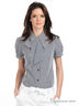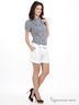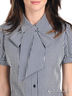 Детали: отложной ворот; застегивается на пуговицы; короткий рукав - фонарик; оригинальный принт - полоска; ворот дополнен лентами, завязывающимися в стильный бант на шее