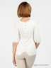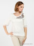 Стильная блуза из приятного на ощупь материала. Округлый вырез горловины декорирован цветами, застежка на пуговицы сзади, рукава декорированы кружевной тесьмой. Отличный вариант для прогулок, встреч, праздничных мероприятий!