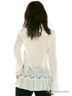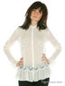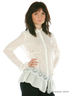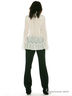 Легкая шелковая блуза приталенного силуэта с расклешенными рукавами и отделкой белым кружевом.