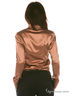 Нежная атласная рубашка с длинными рукавами на пуговицах. Воротник-стойка, застегивается на пуговицы.