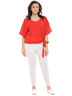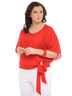 Детали: круглый вырез, короткие рукава "летучая мышь", завязка сбоку