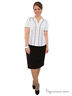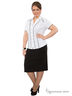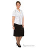 Стильная блуза из полухлопкового материала. Стояче-отложной ворот. Короткие прямые рукава. Застежка на планку с пуговицами. Полочка и рукава декорированы контрастной окантовкой.