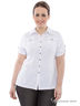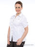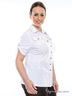 Великолепная блуза из полухлопкового материала. Стояче-отложной ворот. Застежка на планку с пуговицами. Короткие рукава с патами для фиксации декоративных отворотов. На полочке два накладных кармана с клапанами. Декоративные контрастные швы.