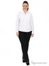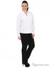 Классическая блуза из высококачественного материала. Стояче0отложной ворот. Застежка на планку с пуговицами. Длинные прямые рукава. Полочка декорирована вставками с изящным узором.