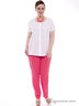 Стильная блуза из комфортного, гипоаллергенного хлопкового материала. Округлый вырез горловины, короткие прямые рукава, застежка на планку с пуговицами, полочка декорирована защипами. Отлично сочетается с юбкой, брюками.